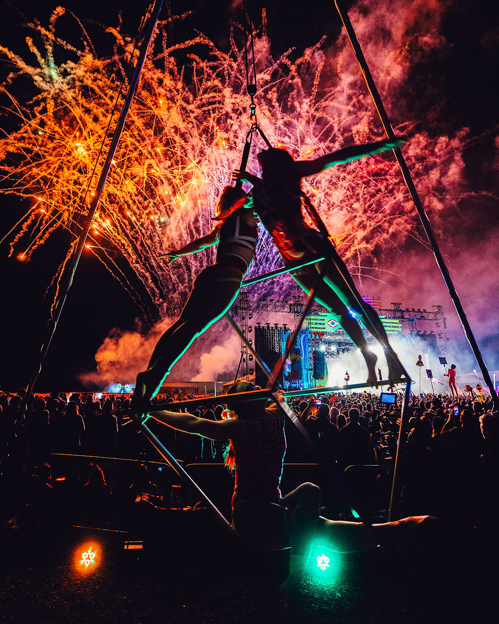 Festivalgoers can also explore a magical playground complete with Burning Man style art cars and rows of Vibe Villages, which are decorated theme camps created by guests. Elements will additionally showcase 3D video projection mapping, interactive performances, and large-scale art installations, plus a Health & Wellness lineup with yoga, aromatherapy, dance, comedy, sound baths, and multidisciplinary workshops.